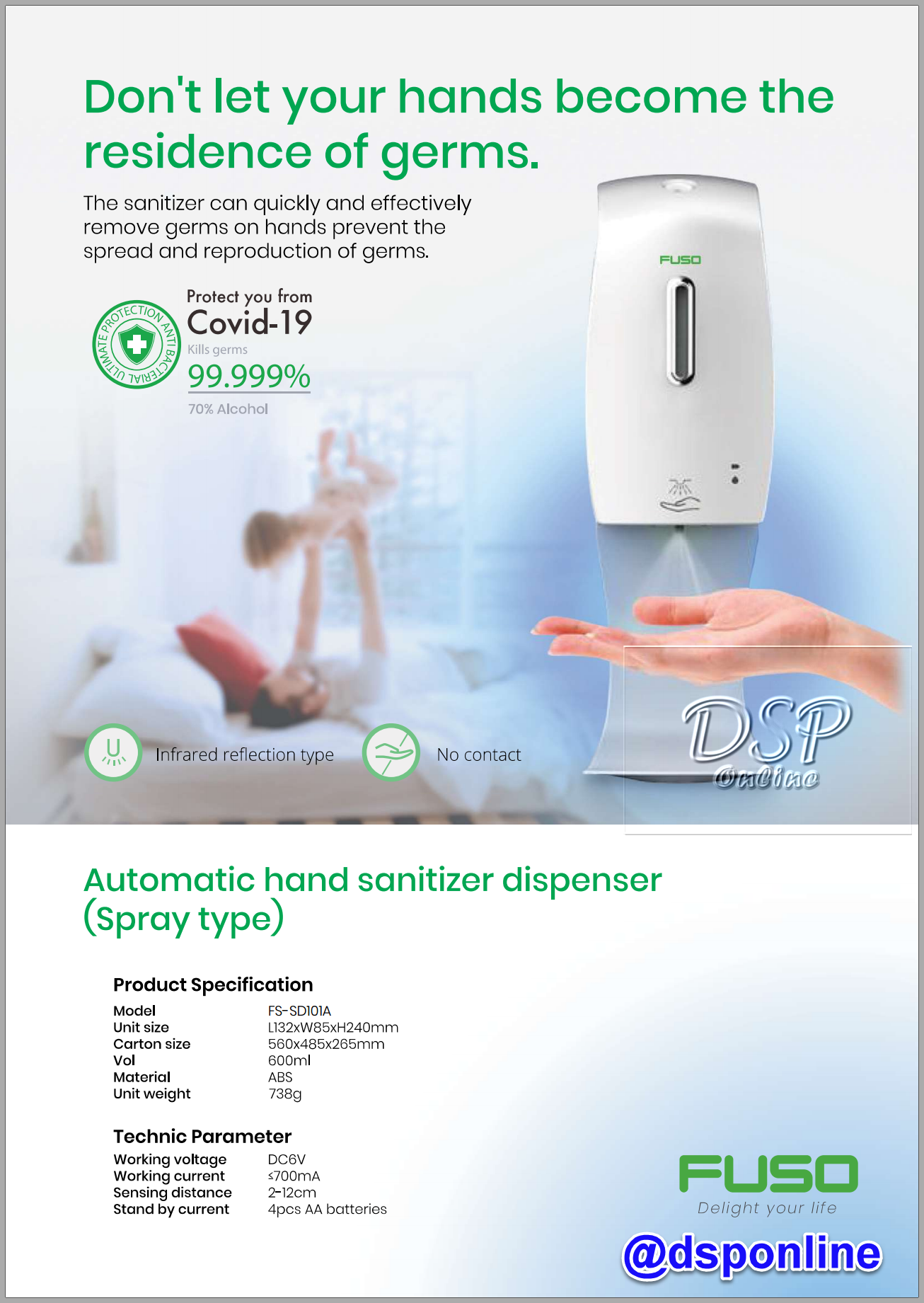 เครื่องพ่นแอลกอฮอล์ ฆ่าเชื้อแบบอัตโนมัติ ลดความเสี่ยงการติดการติดเชื้อไวรัส โดยการลดการสัมผัส☑️ ระบบควบคุมด้วยเซ็นเซอร์ ป้องกันการติดเชื้อและสุขอนามัยที่ดี ☑️ วัสดุคุณภาพดีที่สุด ABS วัสดุเดียวที่ใช้กับอุปกรณ์ยานยนต์ ☑️ รับประกัน 1 ปี เต็ม (เสียเปลี่ยนให้ทันที ส่งศูนย์ประเทศไทย) ☑️ จ่ายแอลกอฮอร์ได้สูงสุดถึง 1,200 ครั้ง ต่อ การเติม 1 ครั้ง ☑️ เทคโนโลยีเซ็นเซอร์อินฟราเรดที่ชาญฉลาดที่สุด ☑️ สามารถปรับระดับการจ่ายแอลกอฮออร์ได้ 2 ระดับ ( 0.5 ml/1ml) ☑️ ติดตั้งง่าย เลือกใช้งานได้ 2 ระบบ (ใช้ถ่านแบตเตอรี่/อเดปเตอร์) ☑️ สามารถ Back Up ได้ในตัวเมื่อเกิดไฟดับ ☑️ ได้รับมาตราฐานจากหน่อยงานต่างๆมากมาย ☑️ใช้ได้กับสถานที่ที่มีคนหนาแน่น หรือที่ๆมีความเสี่ยงสูง เช่น โรงพยาบาล โรงเรียน หรือ ห้างสรรพสินค้าต่างๆ