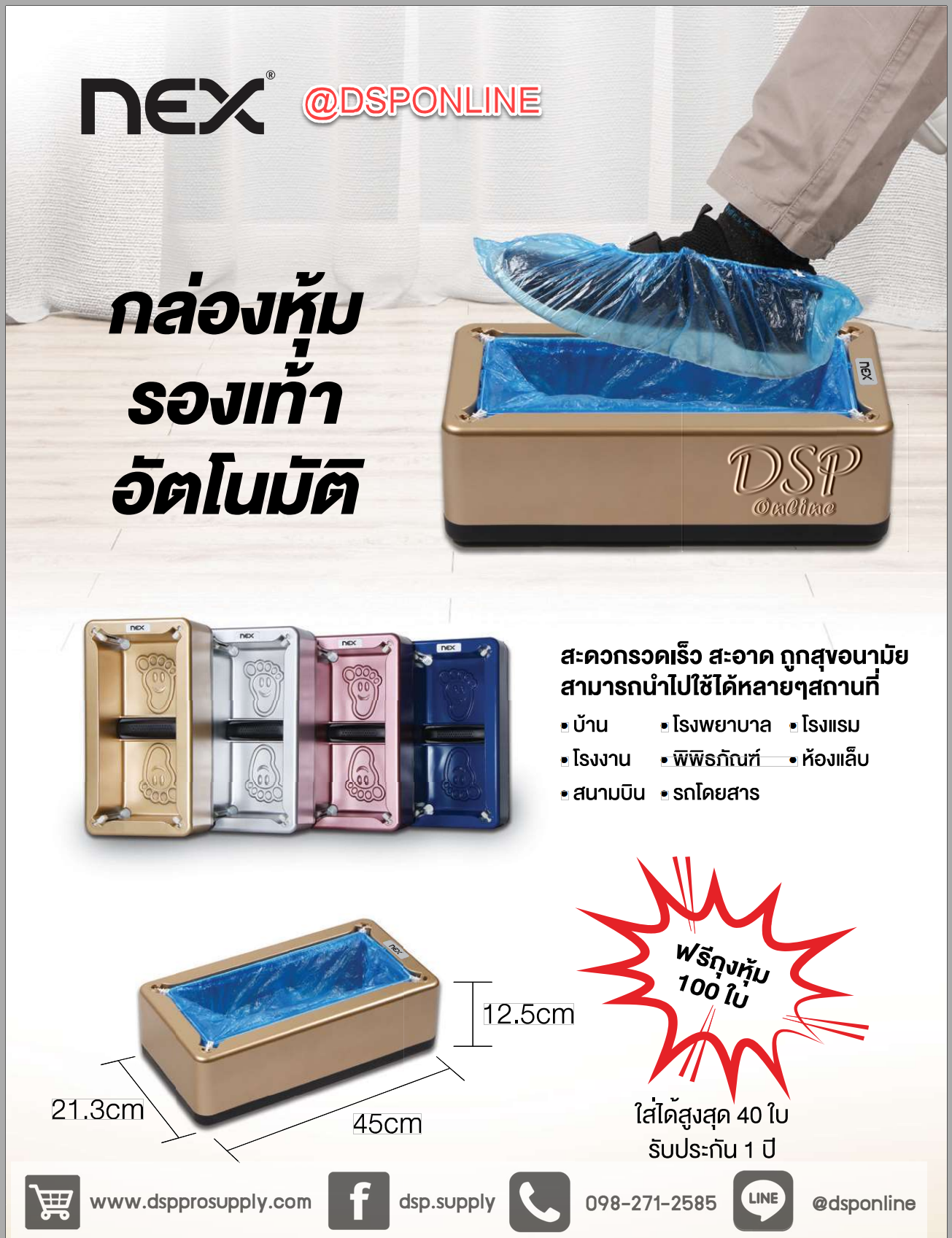 เครื่องสวมถุงพลาสติกหุ้มรองเท้าแบบไม่ต้องใส่เอง เหมาะสำหรับใช้ในโรงพยาบาล อุตสาหกรรมทั่วไป ไม่ต้องใช้ไฟฟ้าหรือใส่ถ่าน ช่วยป้องกันรองเท้าเปียกหรือเปื้อน ไม่ต้องถอดรองเท้าสามารถเดินเข้าบ้านได้เลย สะดวกสะบายมากๆ