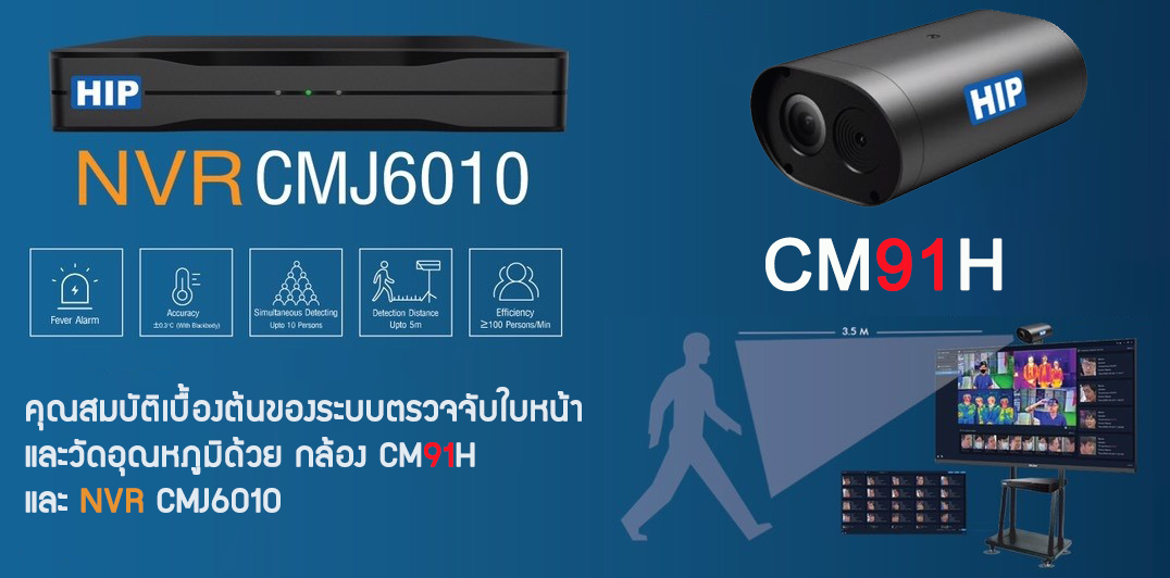 ขายถูก HIP รุ่นCM91H และ NVR CMJ6010 Thermal Camera Solution ระบบกล้องตรวจสอบและตรวจจับอุณหภูมิ รุ่นใหม่ล่าสุดจาก HIP