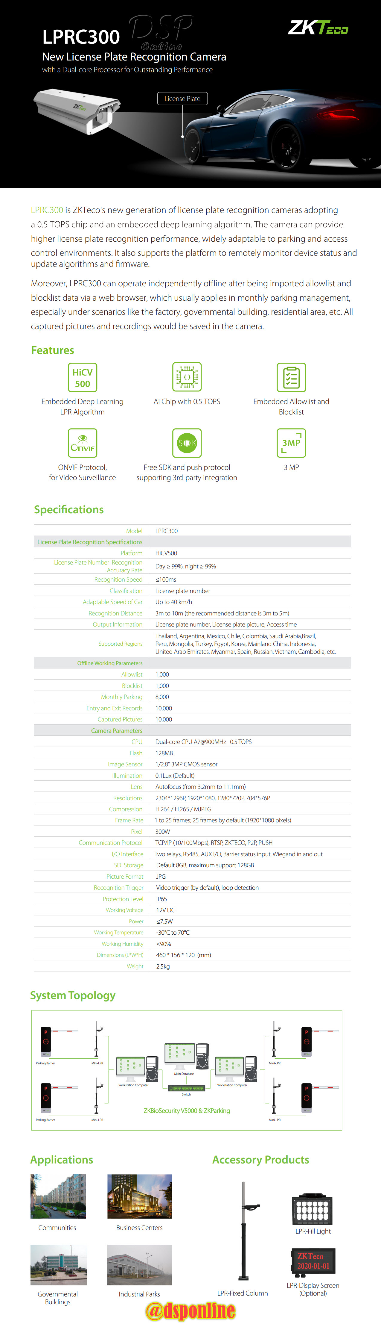 LPRC300 เป็นกล้องจดจําป้ายทะเบียนรุ่นใหม่ของ ZKTeco ที่ใช้ชิป 0.5 TOPS และอัลกอริทึมการเรียนรู้เชิงลึกแบบฝัง สินค้ารับประกัน1ปี ![]() เงื่อนไขเป็นตามที่บริษัทกำหนด 📌ทางบริษัทฯ จะไม่รับผิดชอบในกรณีที่ลูกค้าสั่ง สินค้าผิดเองด้วยเหตุผลทั้งหมด เนื่องจากมีรายละเอียดชัดเจน ก่อนทำการสั่งซื้อ (หากไม่ทราบรายละเอียด กรุณาติดต่อเจ้าหน้าที่ทุกครั้ง ผ่านไลน์ไอดี หรือ ช่องทางแชท) 📌ทางบริษัทฯ ขอสงวนสิทธิ์ในการไม่รับผิดชอบใดๆ อันเนื่องจากข้อผิดพลาดทางการพิมพ์ (ผิด/ตก) ,Spec , รูปสินค้า
