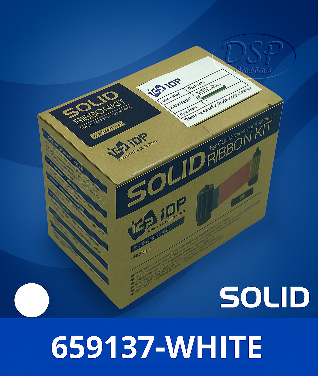 💡 หมายเหตุ: รหัสริบบอน IDP White อาจมีหลายรหัส (เช่น 659137, 650663, 659370) ขึ้นอยู่กับรุ่นเครื่องพิมพ์ที่แน่นอน ทาง DSP จะตรวจสอบและยืนยันให้ท่านได้รับริบบอนที่ ตรงรุ่น สำหรับเครื่องพิมพ์ IDP SOLID หรือ SMART ของท่าน
