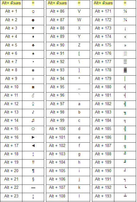 หรือกดปุ่ม Alt ค้างไว้ แล้วพิมพ์ตัวเลข ทั้งสี่หลัก เสร็จแล้วปล่อยปุ่ม Alt ที่กดค้างไว้ จะได้ตัวอักษรพิเศษ ตามที่เราต้องการ..